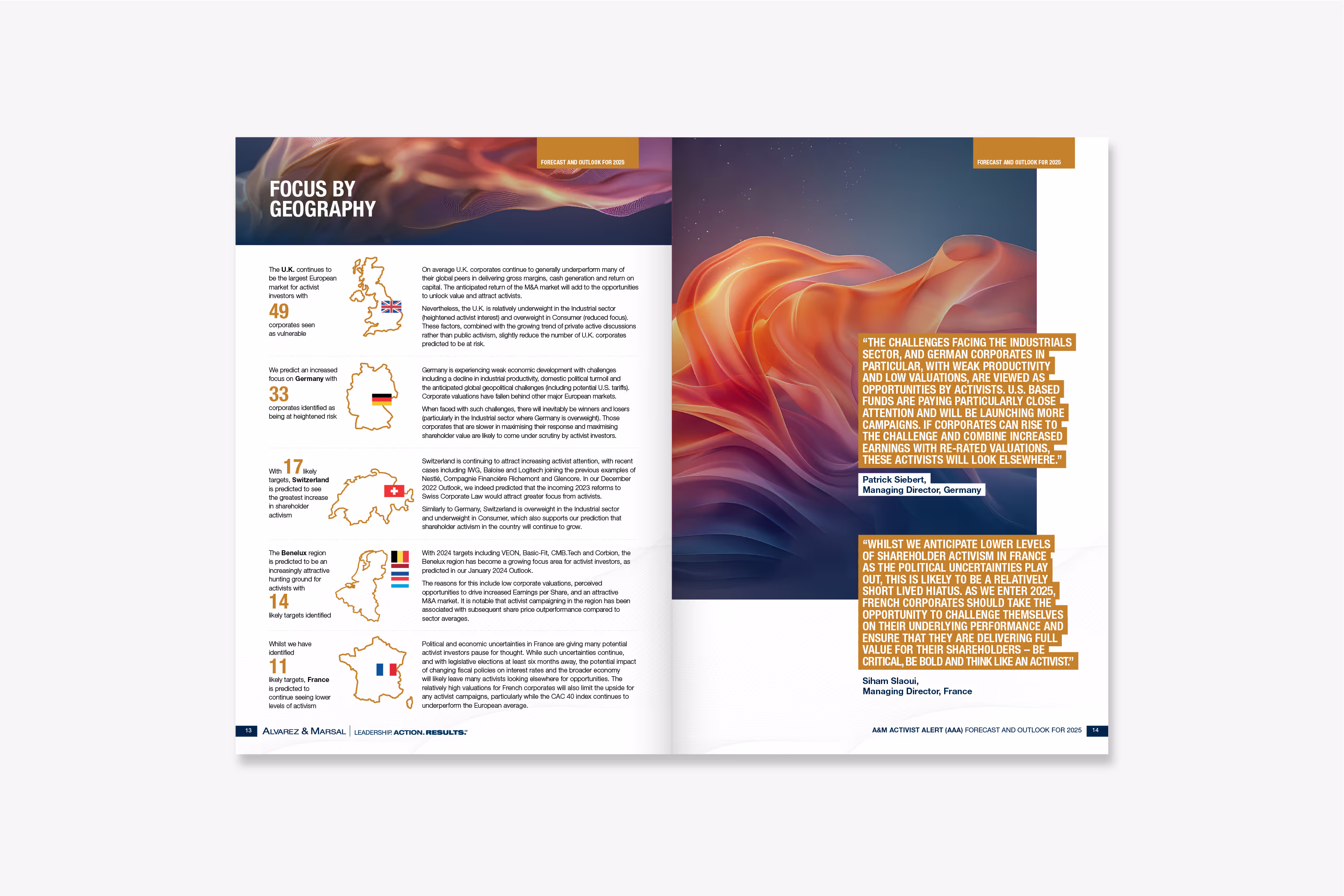 Designing the 14th edition of the AAA Report, predicting activist investor risks and trends in Europe against a backdrop of geopolitical turmoil.